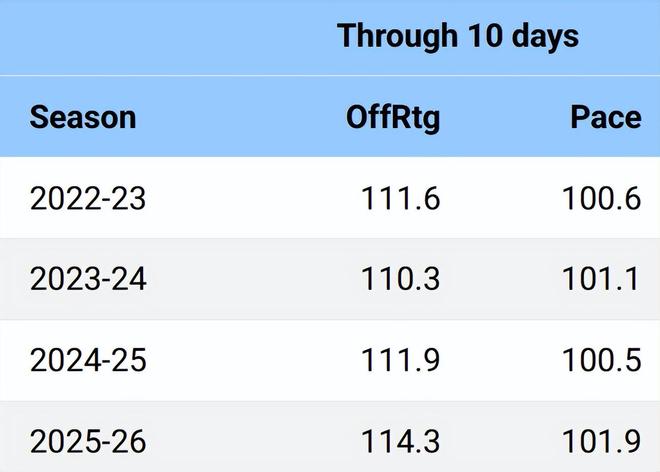 北京时间11月1日,2025-26赛季仍处于开局阶段,目前有4支球队保持不败,3支球队尚未取得首胜。尽管局势可能快速变化,但以下10组数据仍能清晰展现赛季前10天的关键趋势。所有数据统计截至北京时间10月31日。